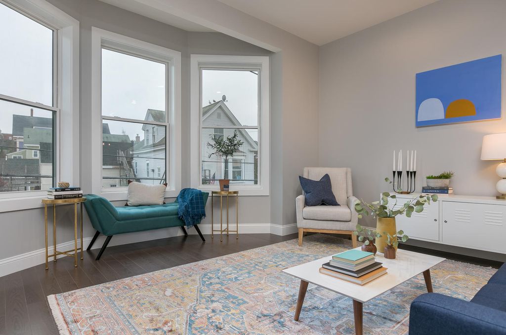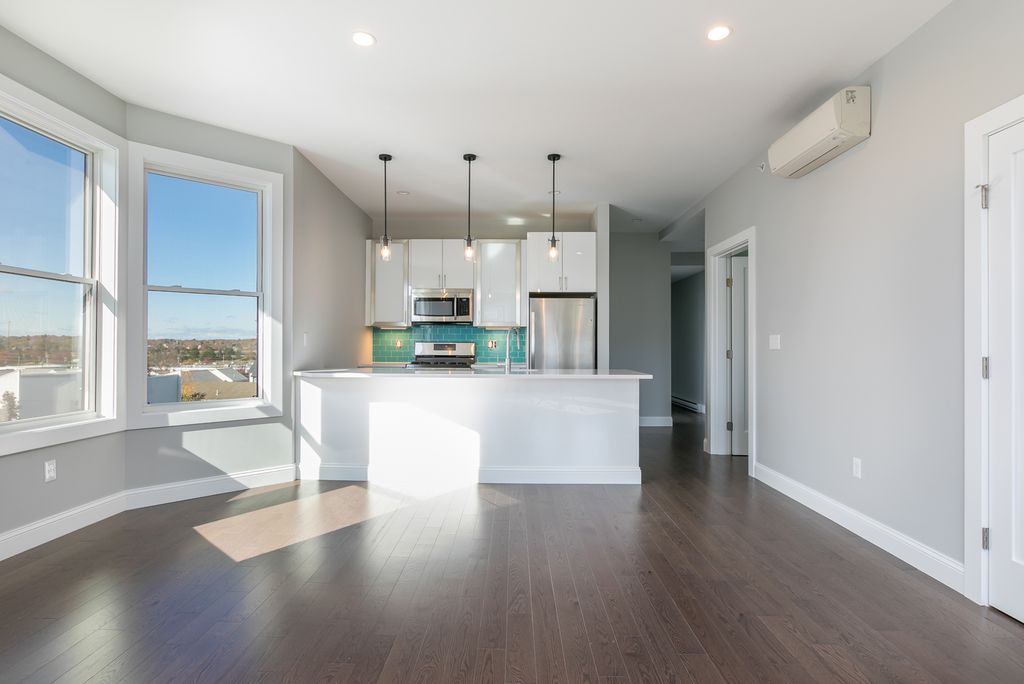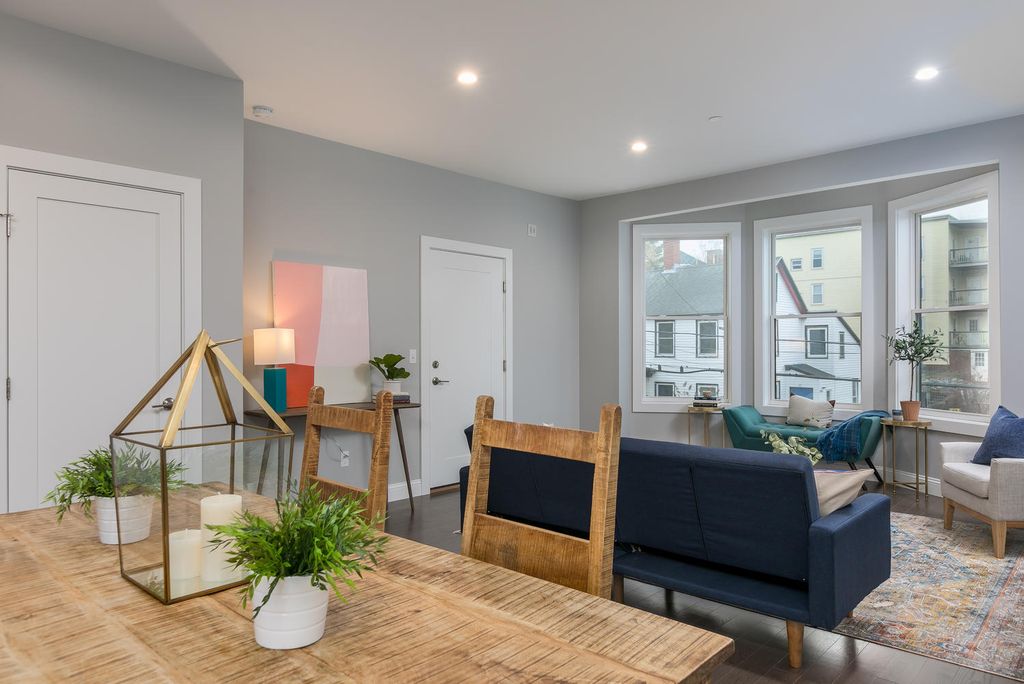 The goal of this project was to create modern and highly functional condominiums in Portland’s most up and coming neighborhood. We removed the existing roof structure and all of the interior wall framing. We also removed all plumbing, gas and electrical systems. We repaired the original stone and brick foundation to make it structurally sound. In addition, we waterproofed the foundation inside and out. We removed the existing slab in the basement and excavated the basement floor in order to create a functioning and bright living space. This walkout daylight basement unit also has a patio access in the rear. We also wanted to provide each upper level apartment with an outside area and so we added decks on the back of the building. We installed large patio doors to provide plenty of natural light in the master bedrooms as well as private access to the decks. These decks offer nice views of Back Cove and the city skyline. We completely updated all mechanical systems and added a new fire protection system. The insulation package we recommended for this project was a combination of blow-in dense packed cellulose, spray foam insulation and mineral wool soundproof insulation for sound control.